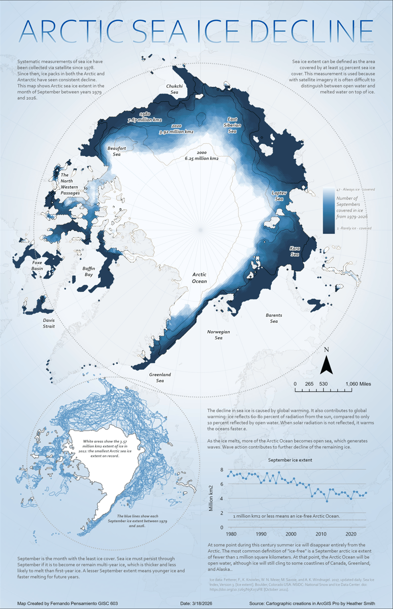 Arctic Sea Ice Decline, created with ArcGIS Pro